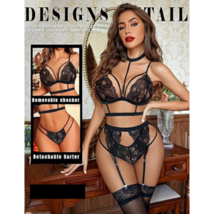 There are four different ways to wear this sexy lace garter lingerie set. You can remove the choker or garter belt to become a set of sexy underwear. Please refer to our buyer show and model pictures. A good choice as a gift for lover.