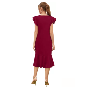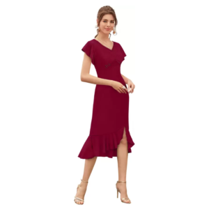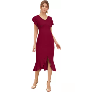 Maroon V Neck Designer One Piece Western Stretchable Bodycon Midi Dress