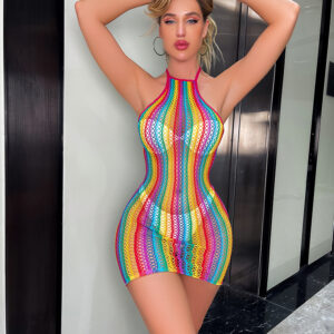 Steal the spotlight with the Fancyra Women’s Rainbow Mesh Halter Dress in a vibrant multicolor design! This sexy party dress features a stunning rainbow gradient, crafted from lightweight, stretchy mesh fabric that ensures comfort while making a bold statement. The halter neck design accentuates your shoulders and neckline, making it an ideal choice for club nights, festivals, or beach parties. Its form-fitting cut highlights your curves, offering a flattering silhouette that’s sure to turn heads wherever you go.This sexy rainbow mesh dress is perfect for those who love to stand out with vibrant, trendy fashion. The breathable material keeps you cool during long nights of dancing or socializing, while the durable construction ensures it holds up to repeated wear. Whether you’re hitting the dance floor or attending a summer festival, this multicolor party dress will make you the center of attention with its playful yet alluring style.