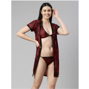 Smooth and Silky satin floral printed robe with Bra Panty set designed specially for your comfort at night .V-neck style printed robe and halter neck bra with side tie panty is perfect for your hot special nights. This robe is great as bathrobe , lounging & relaxing around the house. Satin Robe for Women with adjustable & removable sash tie closure for comfortable fit. This lightweight satin robe has a plain border combination with print .