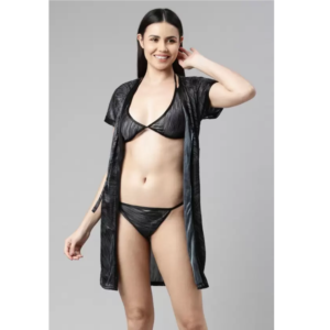 Smooth and Silky satin floral printed robe with Bra Panty set designed specially for your comfort at night .V-neck style printed robe and halter neck bra with side tie panty is perfect for your hot special nights. This robe is great as bathrobe , lounging & relaxing around the house. Satin Robe for Women with adjustable & removable sash tie closure for comfortable fit. This lightweight satin robe has a plain border combination with print .