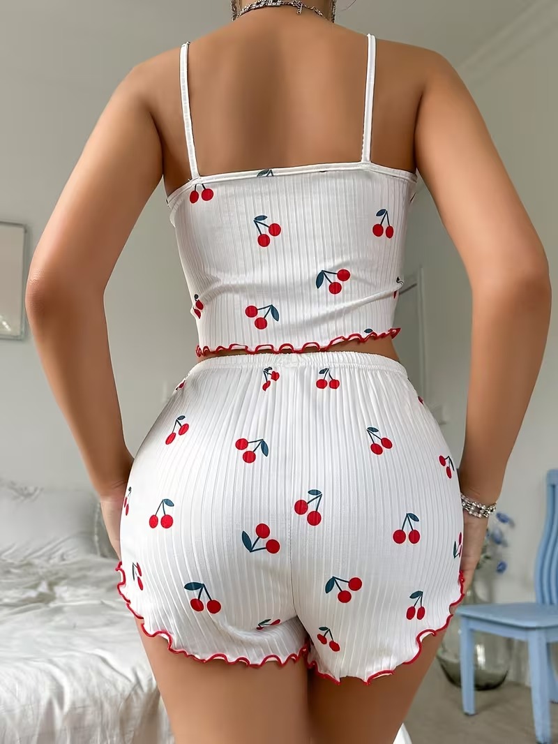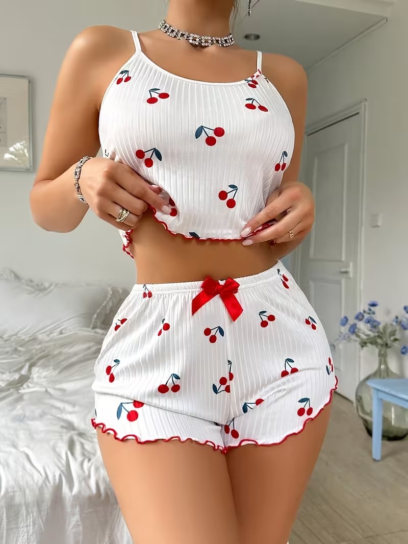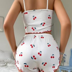 • The nightwear sets include bowknot design, lettuce trim and Cherry pattern