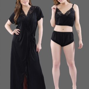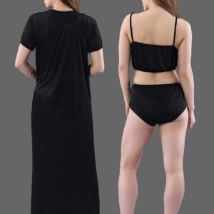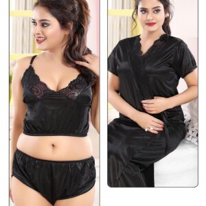 3. Matching Bra and Panty: The set includes a coordinating satin bra and panty, perfectly complementing the nighty. The bra offers gentle support, and the panties feature a comfortable, flattering fit, ensuring a seamless and stunning ensemble.