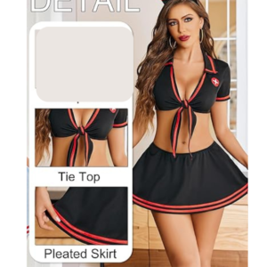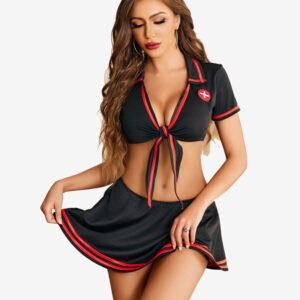 Sexy Nurse Roleplay Cute Lingerie With Tie Top And Mini Pleated Skirt Set