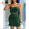 Elevate your wardrobe with this Elegant Ruched Two-Piece Set, perfect for making a sophisticated statement. The set includes a sleek crop top with slim straps and a matching ruched skirt. The ruched detailing accentuates your figure, providing a flattering silhouette that hugs your curves in all the right places.