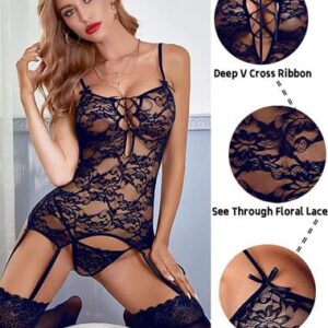 • Floral lace garter belt lingerie set, sexy outfits for women for sex, lace bodysuit, corset lingerie, lingerie dress, chemise nightwear with garter belt