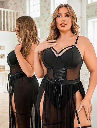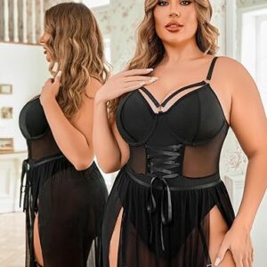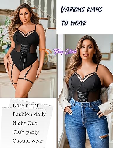 Features:The lingerie bodysuit is equipped with adjustable straps to fit your perfect body, and the back is designed with an adjustable hook-and-eye buckle and sexy cut-outs for your comfort and ease of putting on and taking off. The detachable mesh dress can Enhance your aura and attractiveness and highlight your best curves for a sexier look, or you can remove it and wear it with jeans, leather pants, skirts and so on.