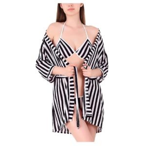 Super soft, Silky comfortable satin women babydoll nightwear robe. Comes with matching satin bra panty bikini lingerie set. |
